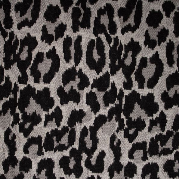 Tissu Maille Jersey Motif Léopard sur fond Gris - Par 10 cm