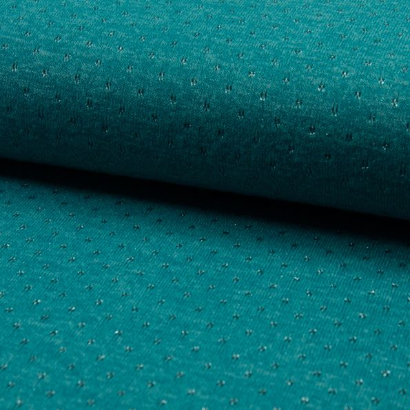 Tissu Maille lurex ajouré Vert canard - Par 10 cm
