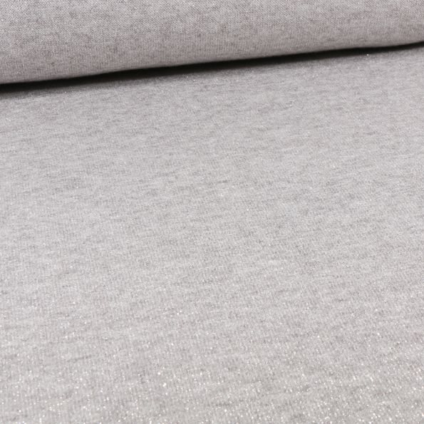 Tissu Maille Lurex argenté Viky sur fond Gris clair - Par 10 cm