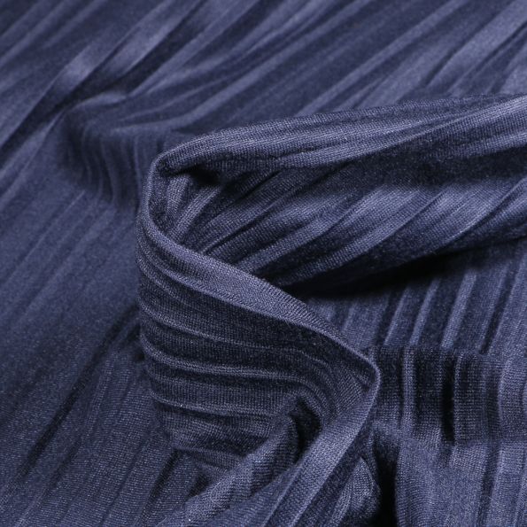 Tissu Maille Plissé uni Bleu marine - Par 10 cm