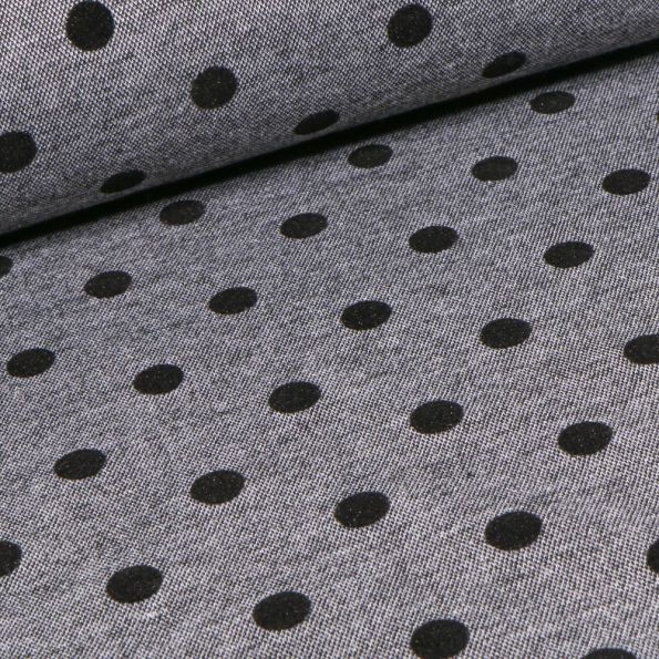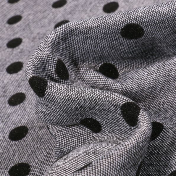 Tissu Maille Pois en relief velours noir sur fond Gris chiné - Par 10 cm