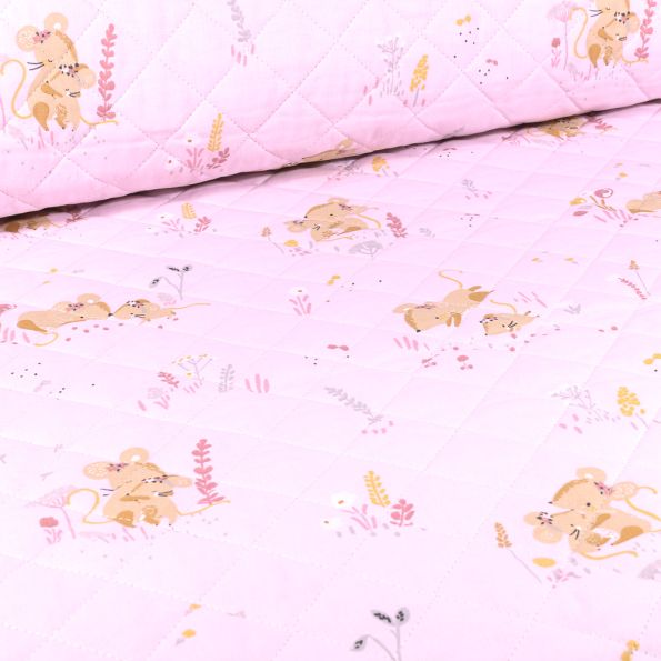 Tissu Matelassé Minissou sur fond Rose - Par 10 cm