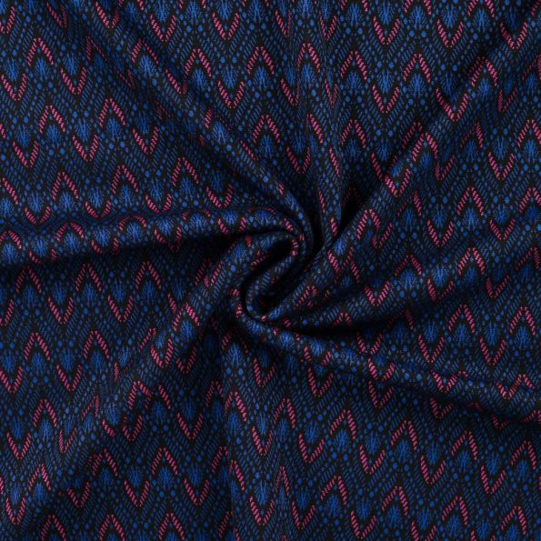Tissu Milano imprimé Motifs fuschia et bleu sur fond Noir - Par 10 cm