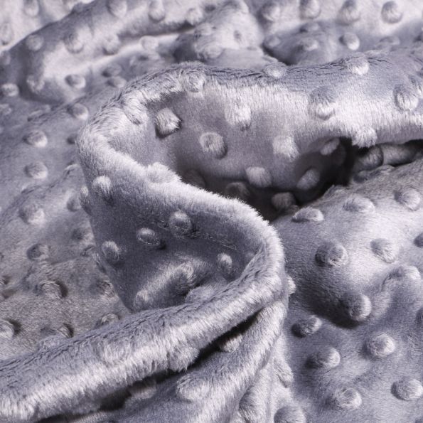 Ce tissu ultra doux, adorable et douillet a une surface velours minky (minkee) lisse avec des pois en relief. Tellement populaire pour des couvertures pour bébés, accessoires pour bébés, jouets en peluche, doudous, des supports de couette, plaids, des accessoires.