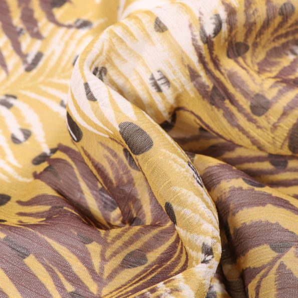 Tissu Mousseline Crépon Feuilles et pois sur fond Ocre - Par 10 cm