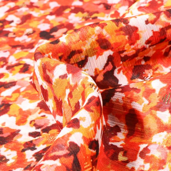 Tissu Mousseline Flora sur fond Orange - Par 10 cm