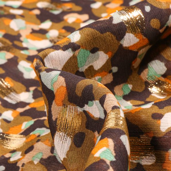 Tissu Mousseline lurex Taches menthe et orange sur fond Noir - Par 10 cm