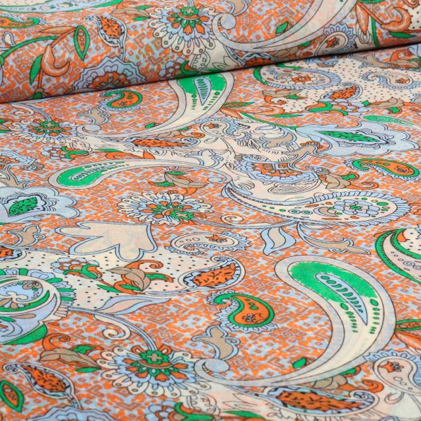 Tissu Mousseline Paisley sur fond Bleu ciel - Par 10 cm