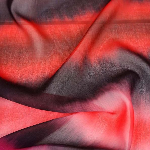 Tissu Mousseline rayé rouge et rose sur fond Noir - Par 10 cm