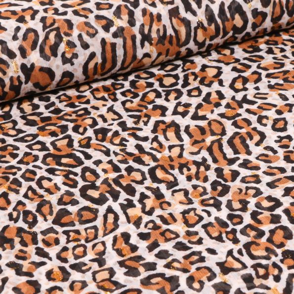 Tissu Mousseline Tâche Léopard sur fond Blanc cassé - Par 10 cm