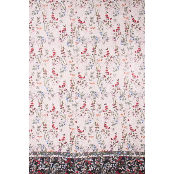 Tissu Panneau Mousseline Gianni Tessuti Fleurs entre liées sur fond Blanc cassé - Par 100 cm