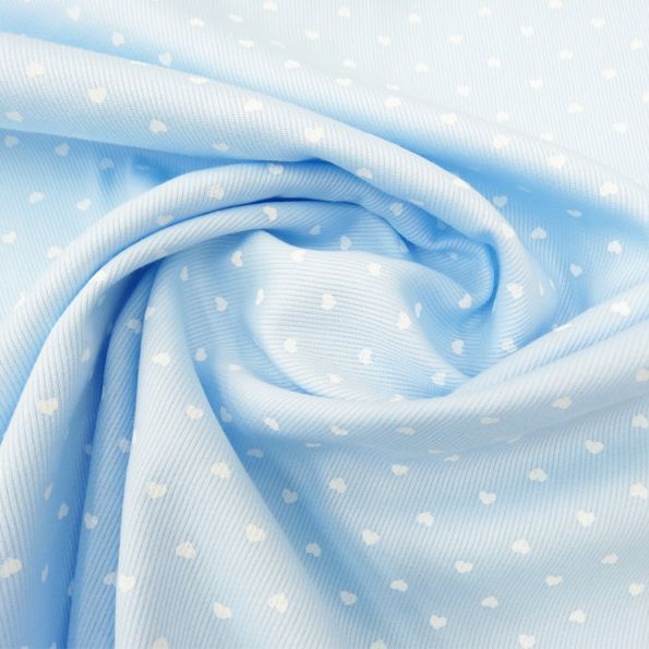 Tissu Piqué de coton Bleu ciel Coeurs Blancs 3 mm - Par 10 cm