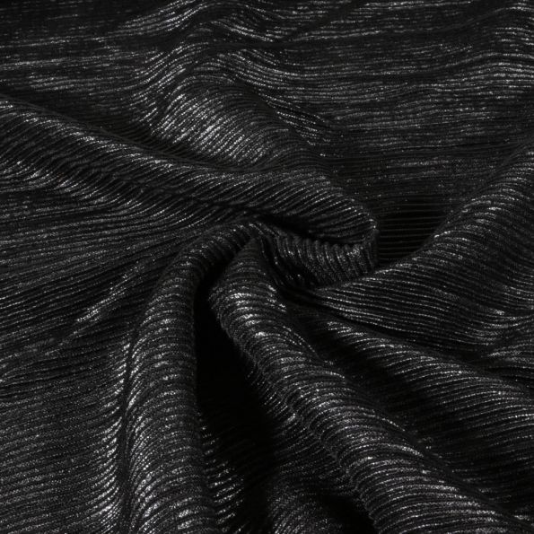 Tissu Plissé Shinny pailleté argenté sur fond Noir - Par 10 cm
