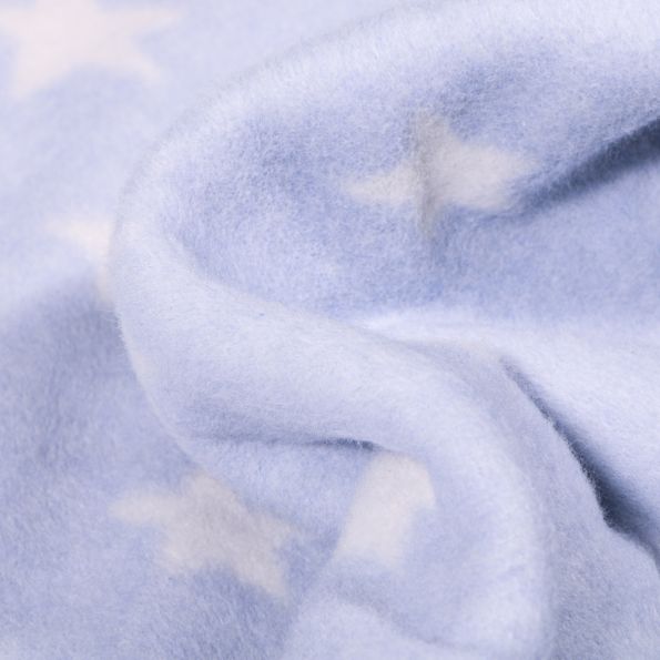 Tissu Polaire Coton Bio Etoiles blanches sur fond Bleu ciel - Par 10 cm