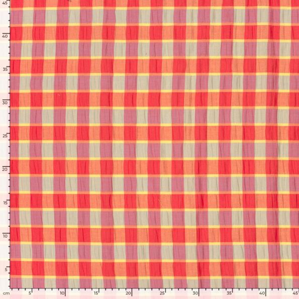 Tissu Polycoton smock carreaux jaune et Rouge - Par 10 cm