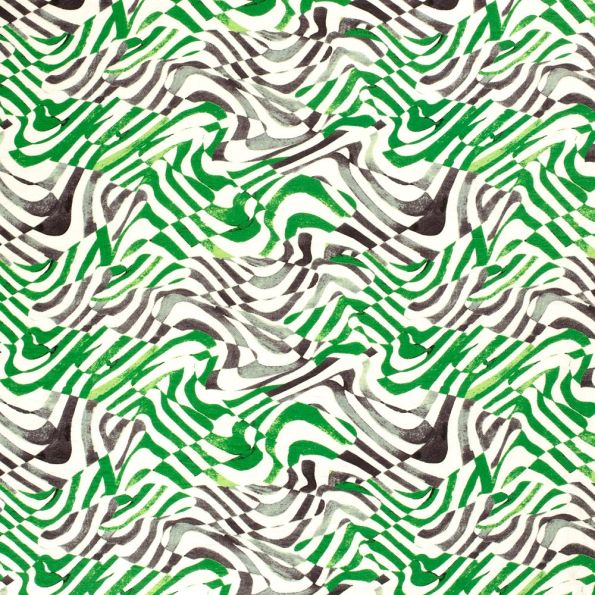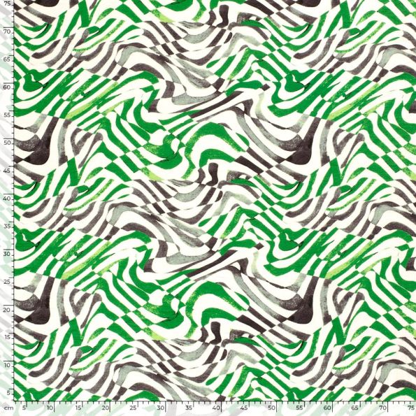 Tissu Polyviscose Leaves Vert sur fond Blanc - Par 10 cm