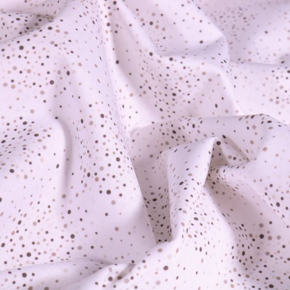 Tissu Popeline Coton Bio Pois gris et taupe sur fond Blanc - Par 10 cm