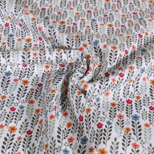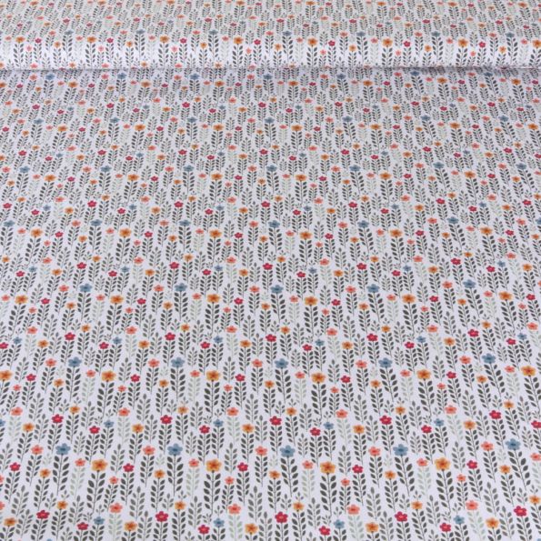 Tissu Popeline de Coton imprimé Floral indien Goa sur fond Blanc - Par 10 cm