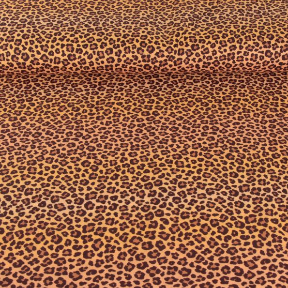 Tissu Popeline de Coton Léopard sur fond Ocre - Par 10 cm
