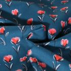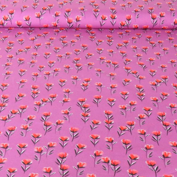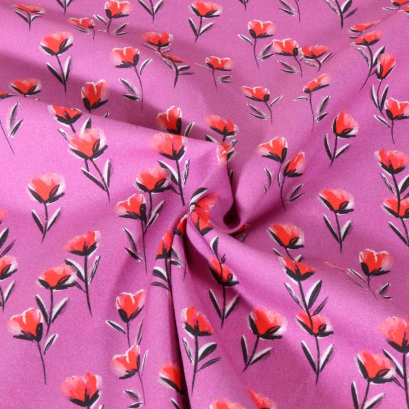 Tissu Popeline de Coton Poppy Éclats de Coquelicot sur fond Rose - Par 10 cm