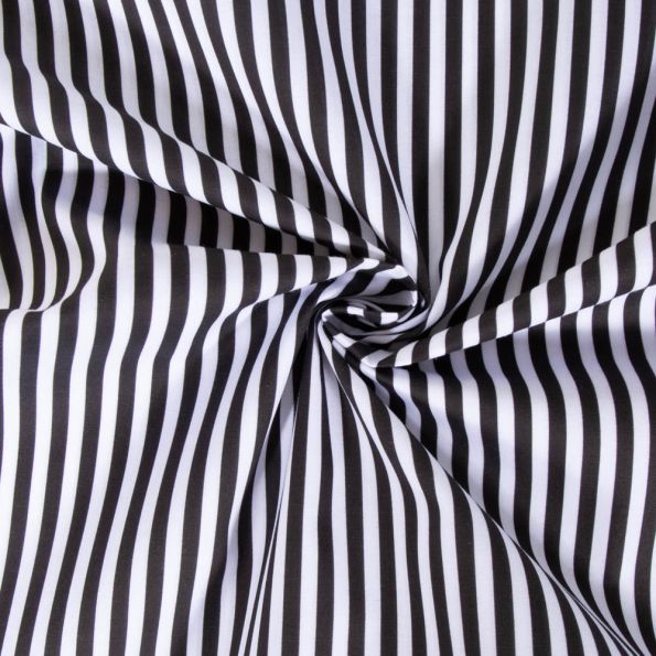 Tissu Popeline de Coton Rayures noires 5 mm sur fond Blanc - Par 10 cm