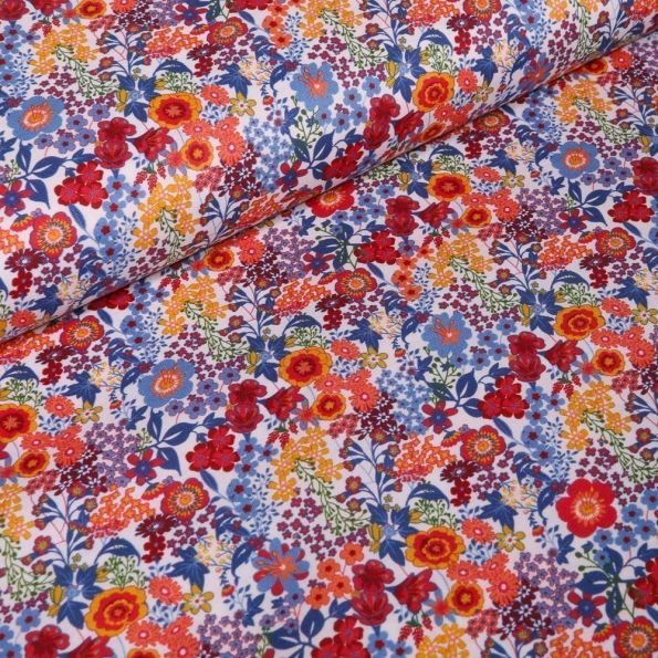 Tissu Popeline de coton Sweet Flower Carmen sur fond Blanc - Par 10 cm