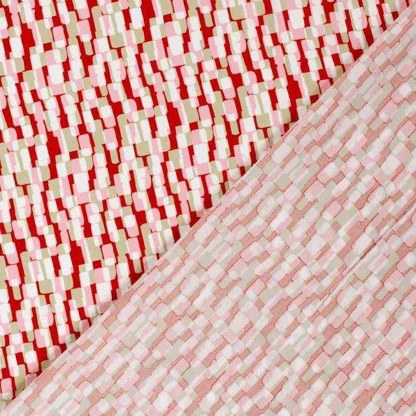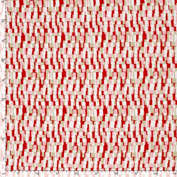 Tissu Popeline de Viscose Motifs abstraits sur fond Rouge - Par 10 cm