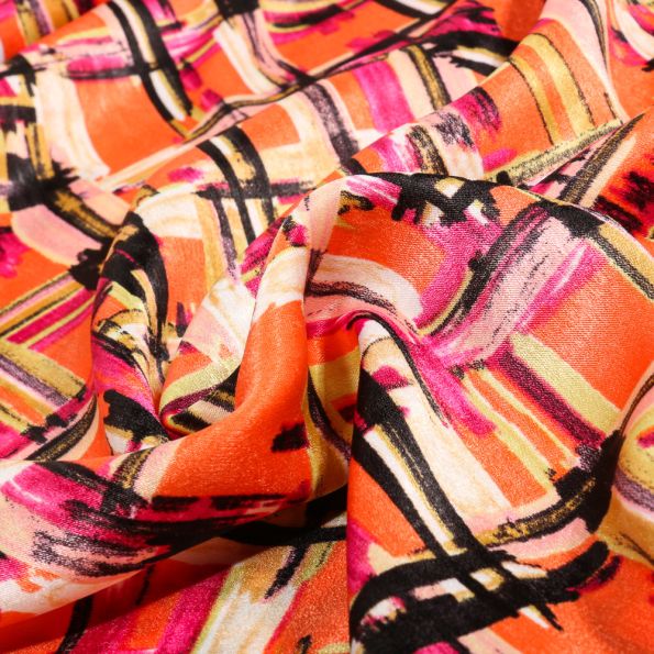 Tissu Satin imprimé Freja sur fond Orange - Par 10 cm