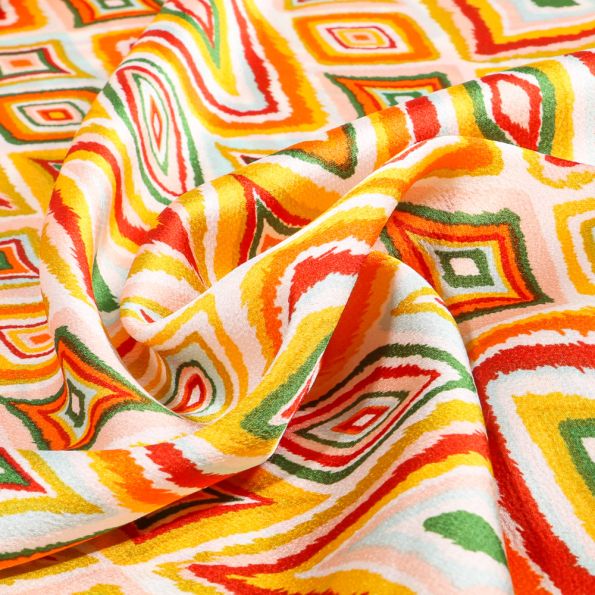 Tissu Satin imprimé Losanges multicolores sur fond Ecru - Par 10 cm