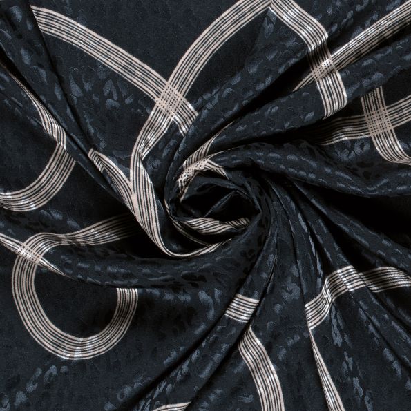 Tissu Satin imprimé Relief léopard sur fond Bleu marine - Par 10 cm