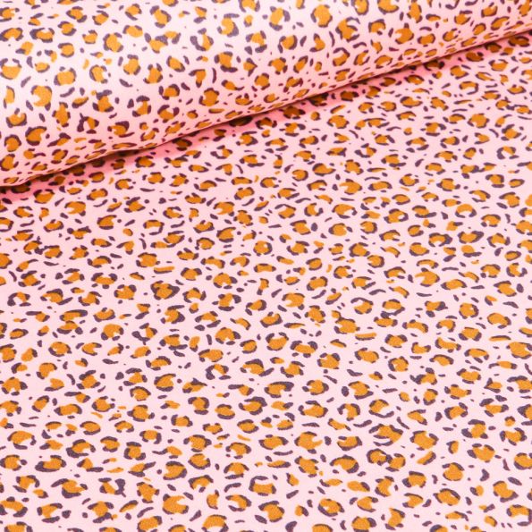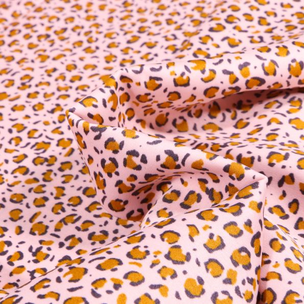 Tissu Satin imprimé Tache léopard sur fond Rose pâle - Par 10 cm