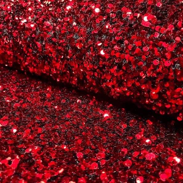 Tissu Sequins épais extensible Rouge - Par 10 cm