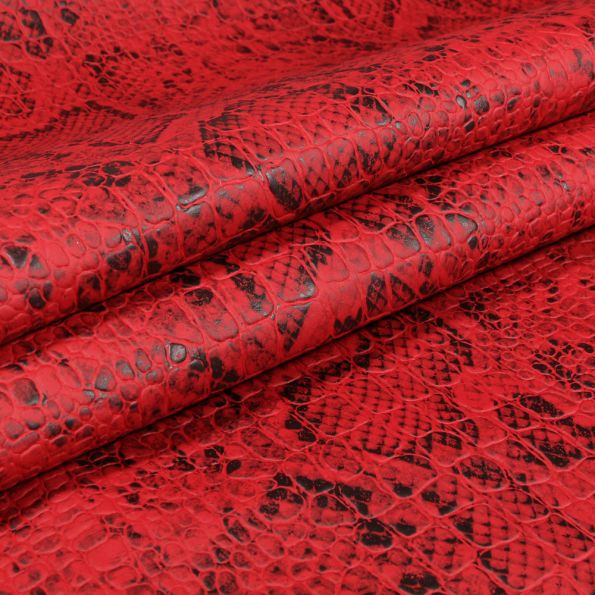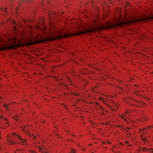 Tissu Simili cuir Croco Snake Noir mat sur fond Rouge - Par 10 cm