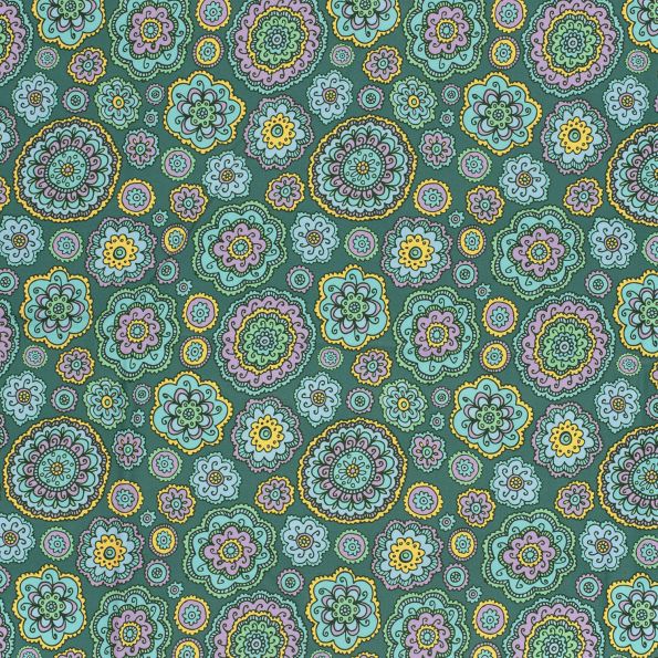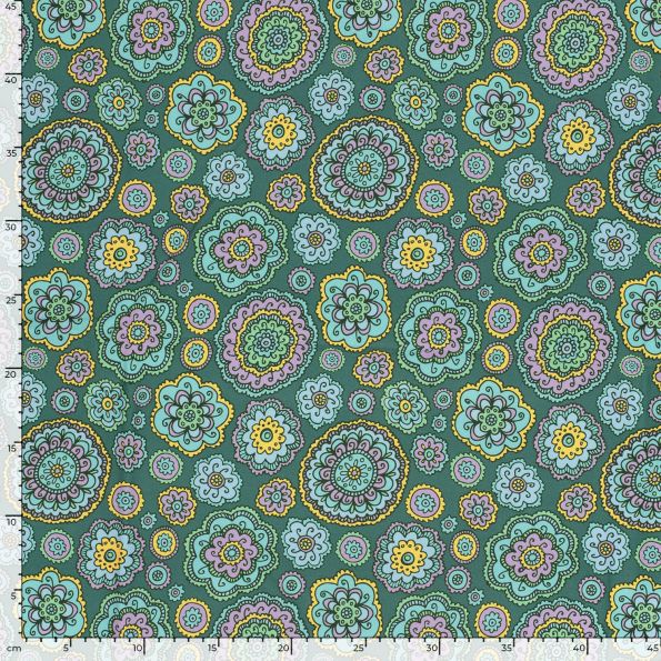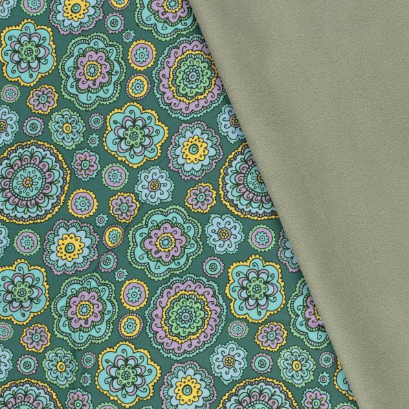 Tissu Softshell Digital Mandala sur fond Vert - Par 10 cm