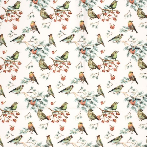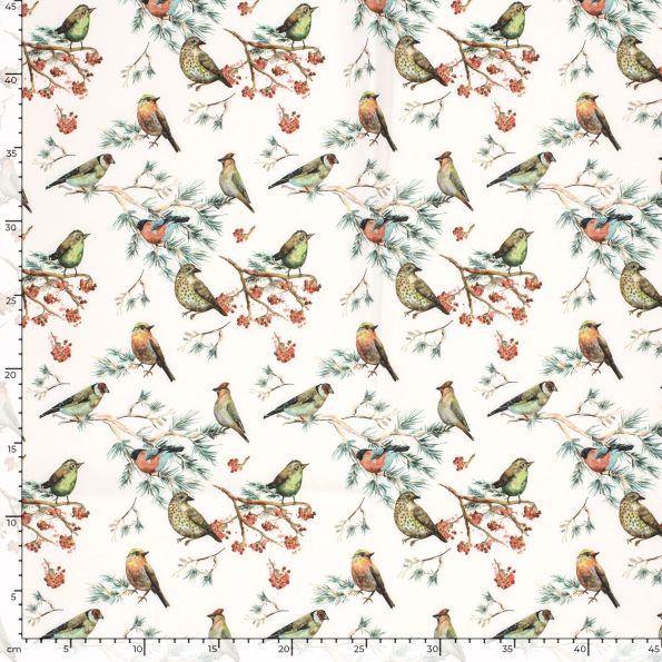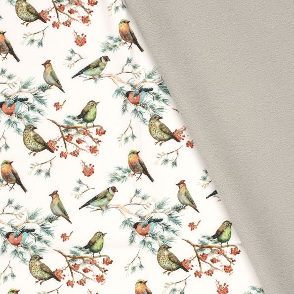 Tissu Softshell Digital Oiseaux Olgo sur fond Ecru - Par 10 cm