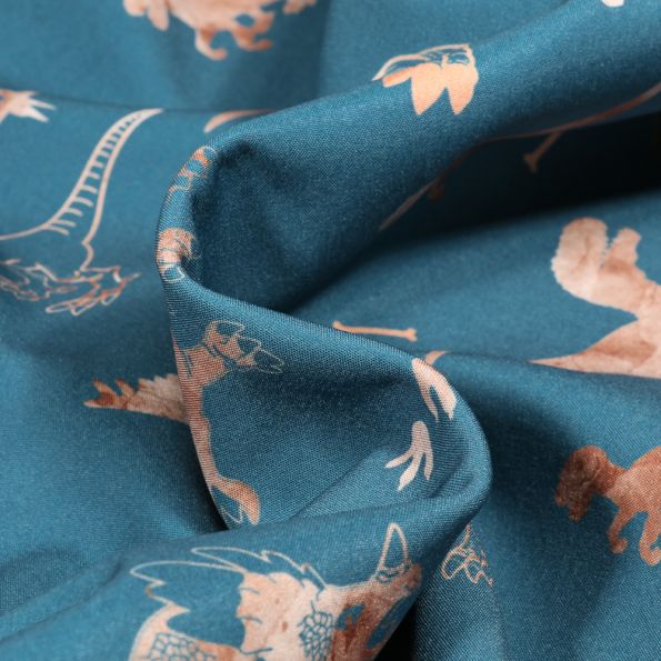 Tissu Softshell Dinosaures sur fond Bleu paon - Par 10 cm