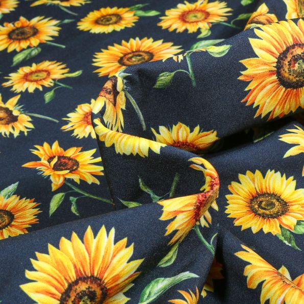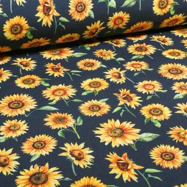 Tissu Softshell Tournesol sur fond Bleu marine - Par 10 cm