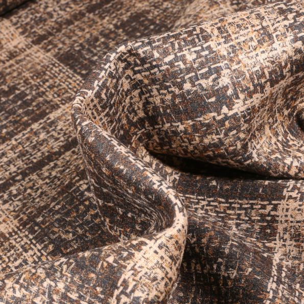 Tissu Suédine Elasthanne aspect Daim Carreaux sur fond Marron - Par 10 cm