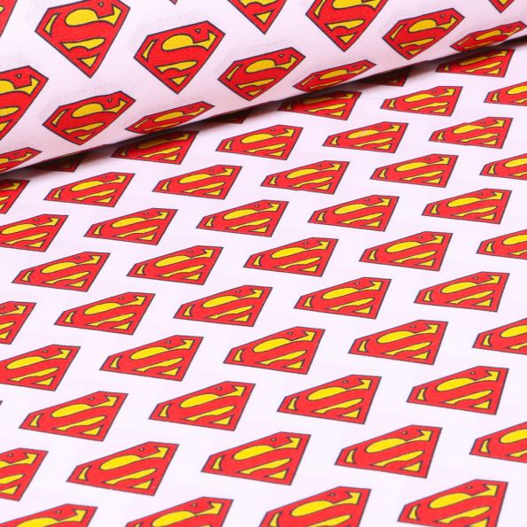 Tissu Superman Logo sur fond Blanc - Par 10 cm