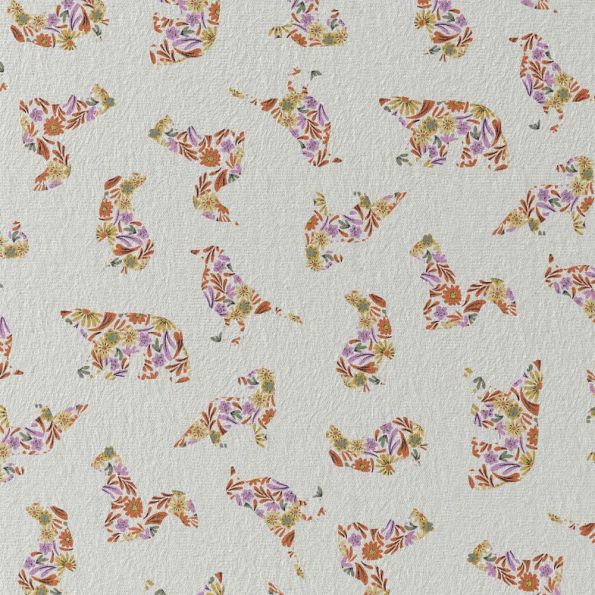 Tissu Sweat léger envers gratté Animaux fleuris sur fond Ecru - Par 10 cm