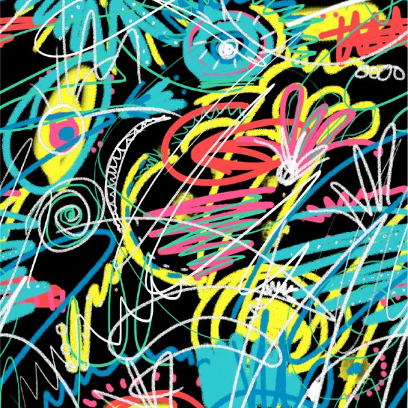 Tissu Sweat léger French Terry Graffiti coloré sur fond Noir - Par 10 cm