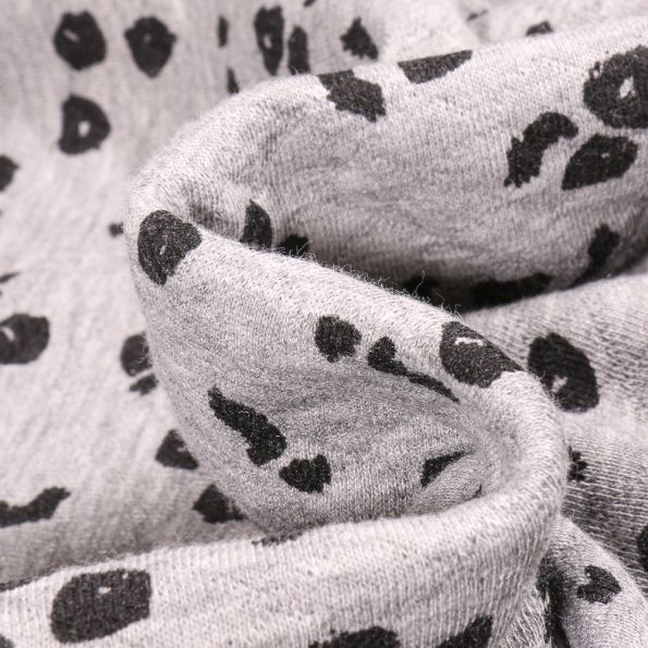 Tissu Sweat matelassé Tacheté Léo sur fond Gris chiné - Par 10 cm