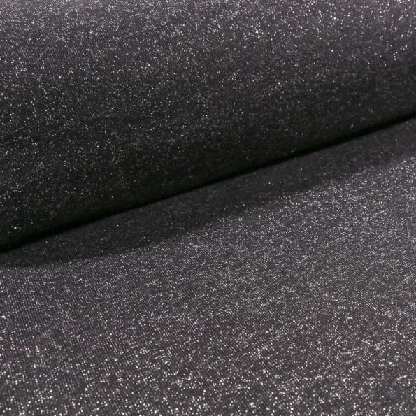 Tissu Sweat Paillettes argentées sur fond Noir - Par 10 cm