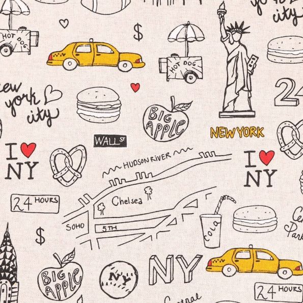 Tissu Toile Coton I love New York sur fond Beige - Par 10 cm