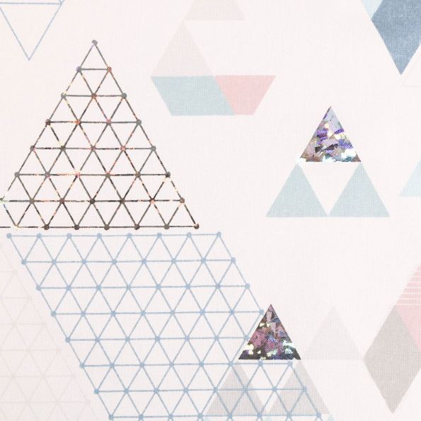 Tissu Toile Coton Métallisé Formes géométriques holographiques et pastels sur fond Ecru - Par 10 cm