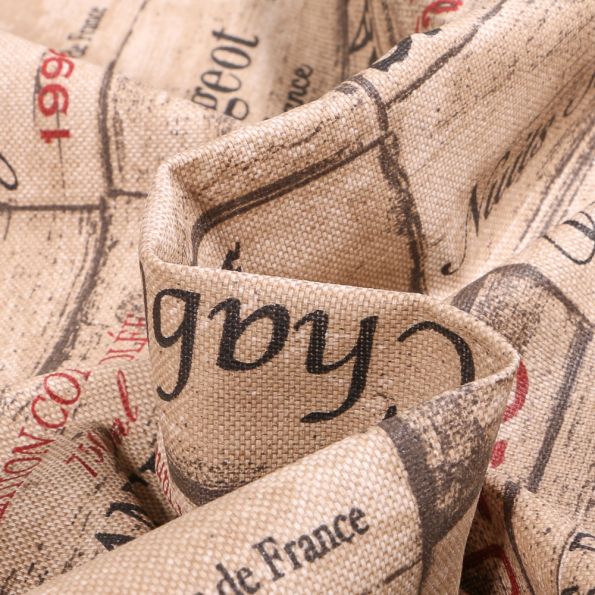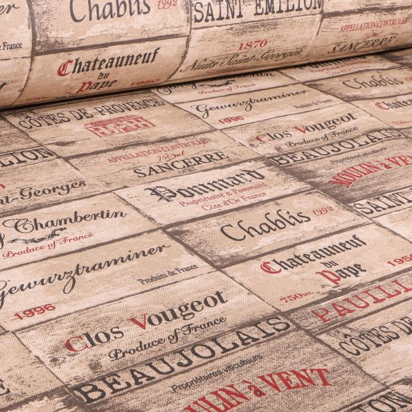 Tissu Toile de Coton Cuvée de vins sur fond Beige - Par 10 cm