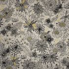 Tissu Toile de Coton Fleurs noires blanches et dorées sur fond Blanc - Par 10 cm