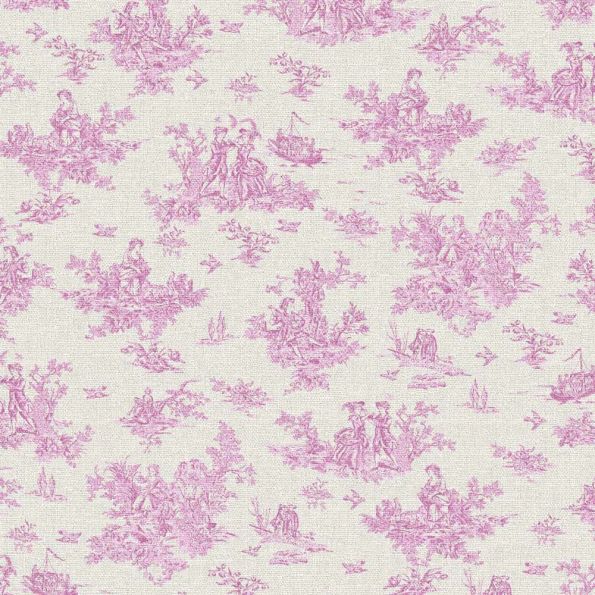 Tissu Toile de Coton Jouy rose sur fond Blanc cassé - Par 10 cm