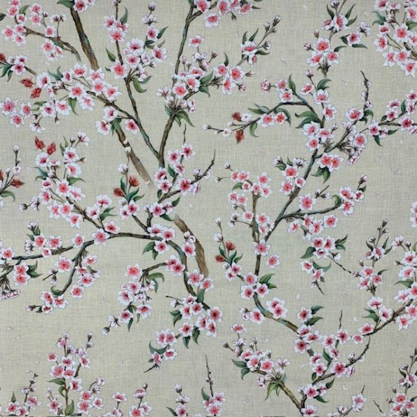 Ce tissu toile de coton aux motifs de merisier est très tendance ! C'est un tissu épais permettant la réalisation d’accessoires (sacs, tabliers, sachets lavande…), des objets de décoration (coussins, rideaux, nappes, chemins de table…) mais aussi de la restauration d’anciens fauteuils…