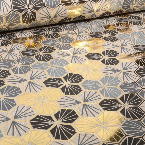 Tissu Toile de Coton métallisée géométrique Riad sur fond Naturel - Par 10 cm